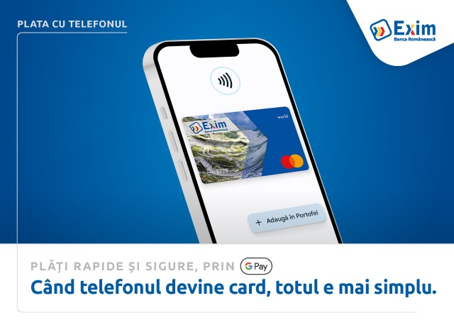 Exim Banca Romaneasca lanseaza platile contactless cu telefonul prin Google Pay