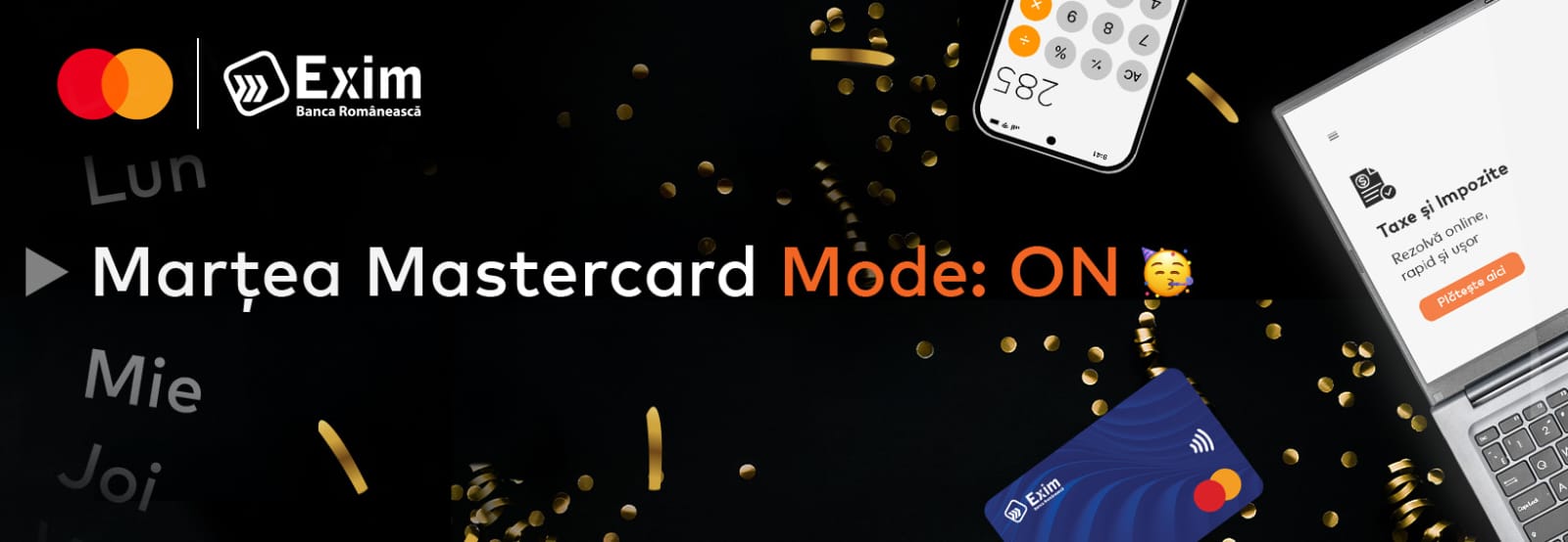 Fiecare marti la Exim Banca Romaneasca devine ziua dedicata exclusiv posesorilor de carduri Mastercard.