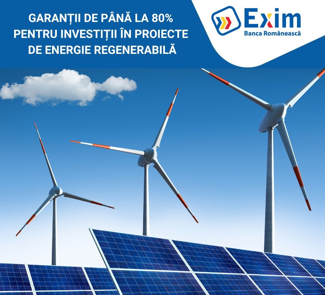 Exim Banca Romaneasca emite garantii de stat pentru proiecte de energie regenerabila