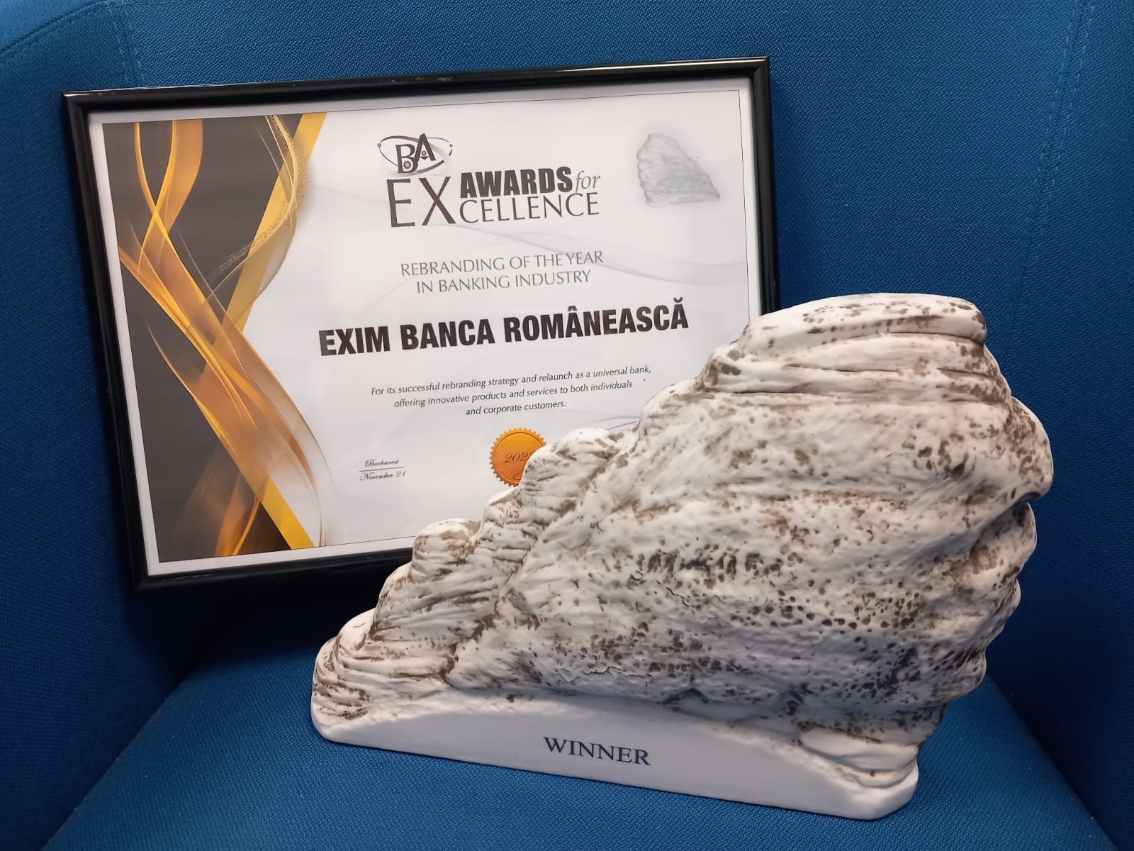 Exim Banca Romaneasca a fost premiata pentru strategia sa de rebranding de succes si relansarea ca bancă universala, oferind produse si servicii inovatoare atat persoanelor fizice, cat si clientilor corporativi, in cadrul Business Arena Awards for excellence 2023.
