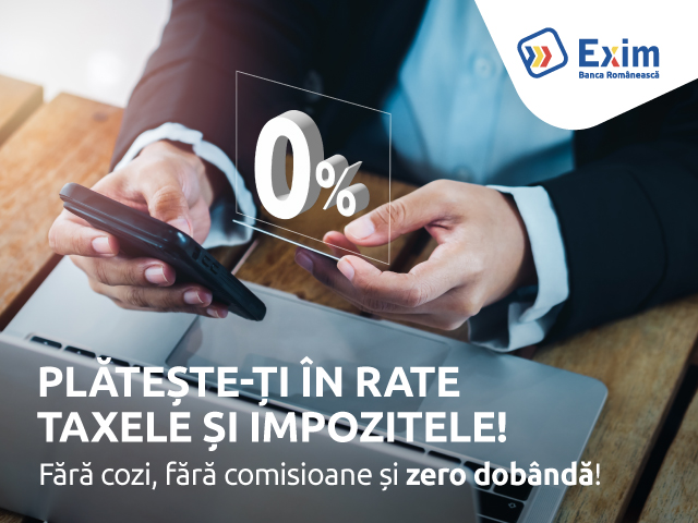 Exim Banca Romaneasca lanseaza campania ”Plateste-ti taxele si impozitele in rate fara comision si cu zero dobanda”
