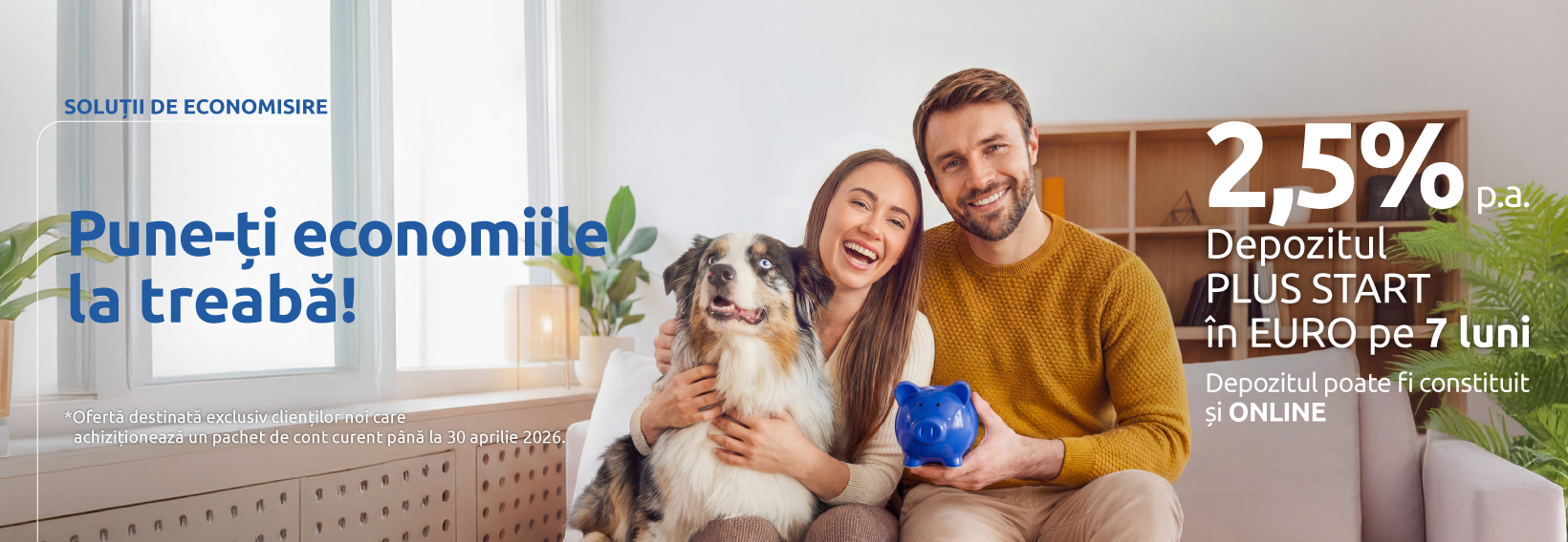 Deschide in orice unitate Exim Banca Romaneasca un cont curent in cadrul unui pachet de cont si beneficiezi de o dobanda bonus la Depozitul PLUS START in euro pe 7 luni.