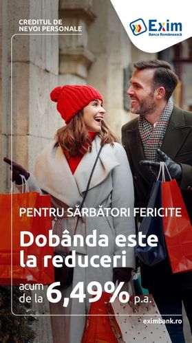 Exim Banca Romaneasca continua campania de economisire in cadrul careia bonifica cu dobanzi atractive, peste media pietei, de ...