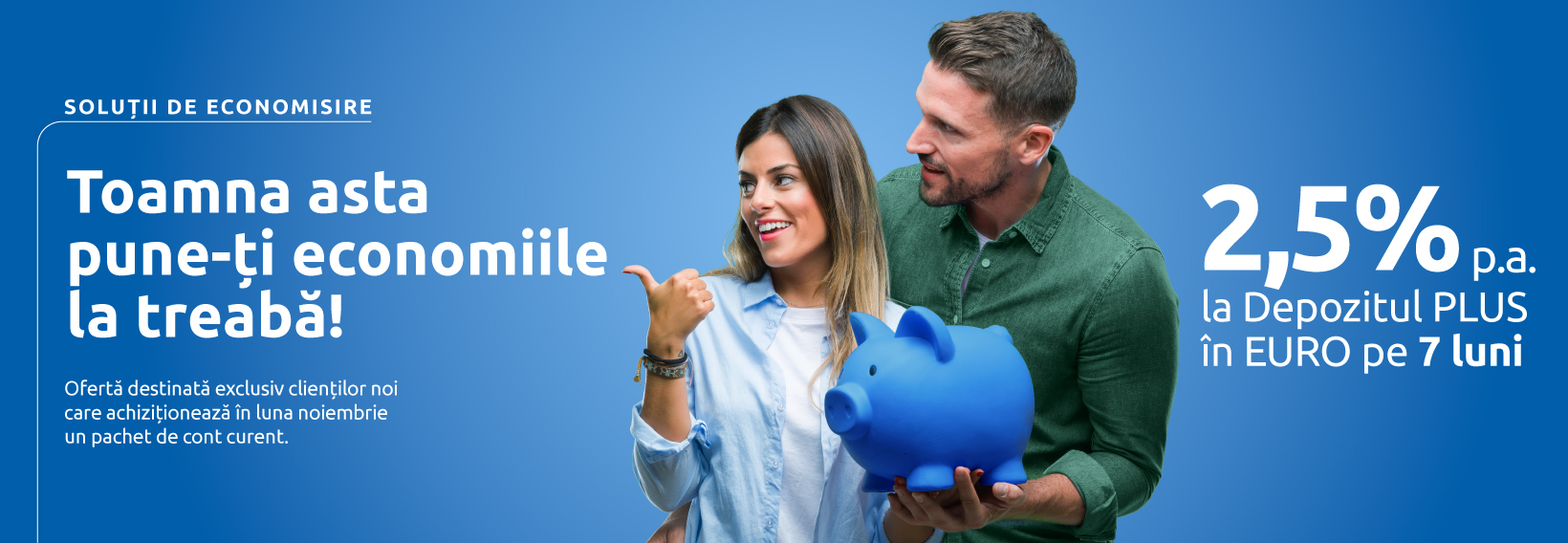 Dobanda speciala la Depozitul PLUS in euro constituit din fonduri noi pe 7 luni si pentru persoanele fizice, clienti existenti, care doresc sa economiseasca.